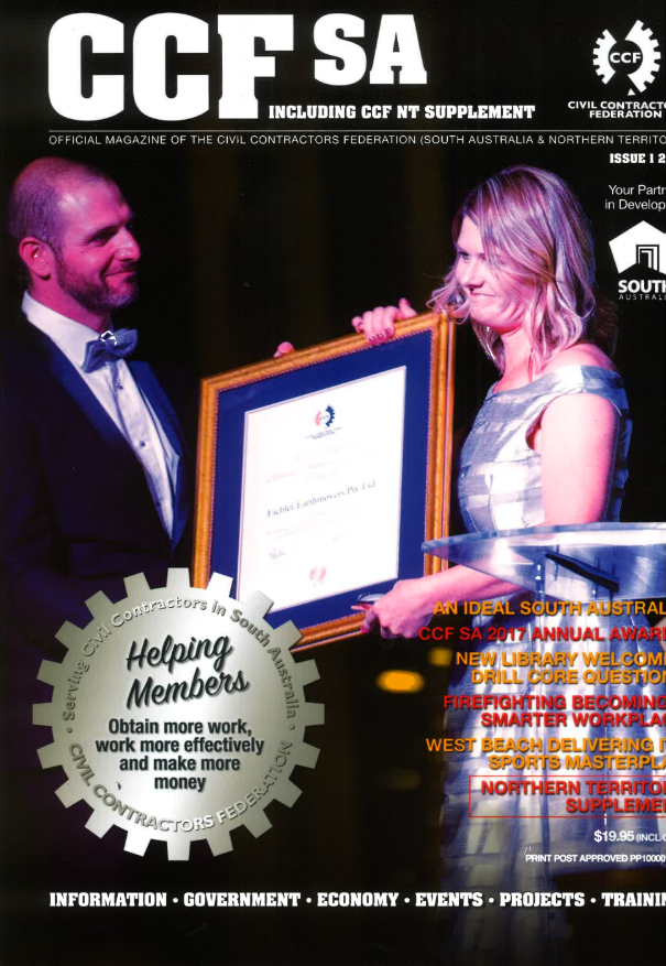 In 2017, we were proud to be inducted into the Civil Contractors Federation SA Hall of Fame for sustained contribution to the Industry. The Civil Contractors Federation is the peak body representing Australia’s civil construction industry, supporting members’ businesses and providing a unified voice to all levels of government. The CCF has branches in all states and territories and has around 2000 Contractor and Associate members nationally.
